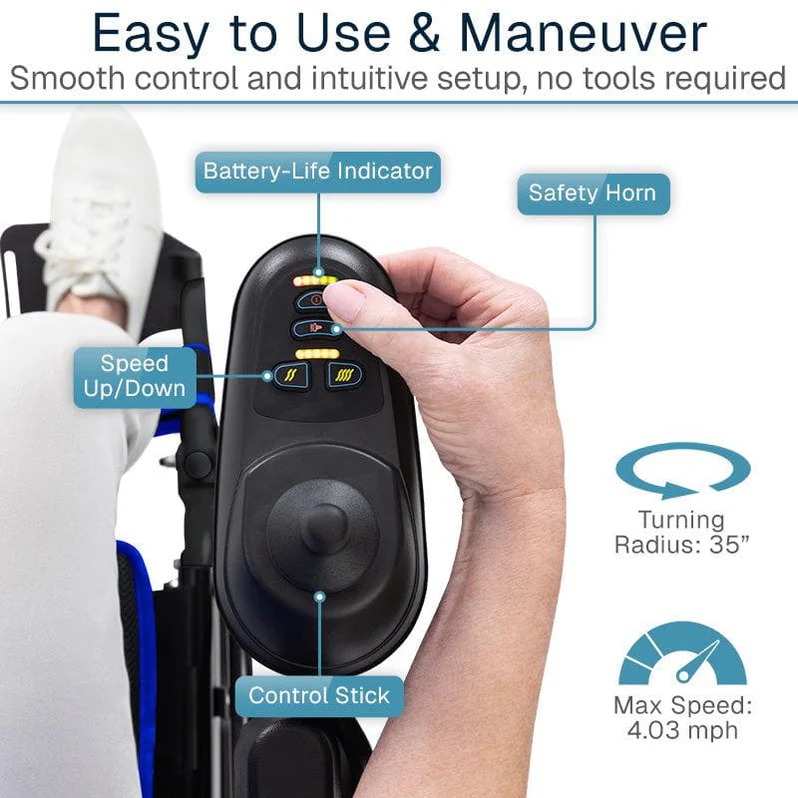 At just 44 lbs with the battery, this electric wheelchair is light enough to lift and fold with ease. Its compact build fits into most car trunks, making it ideal for everyday mobility and travel.