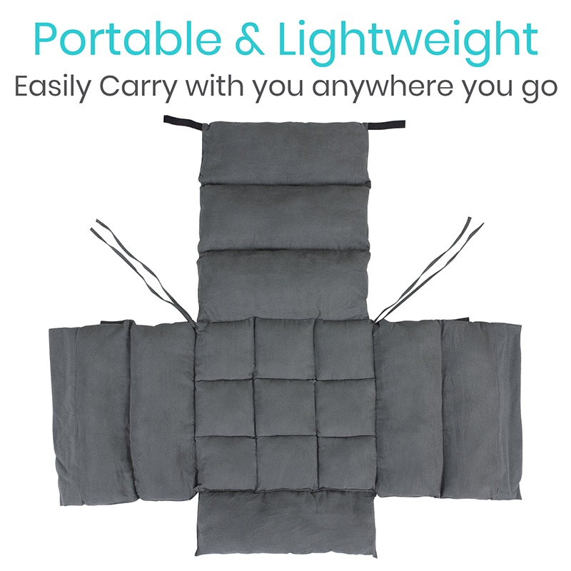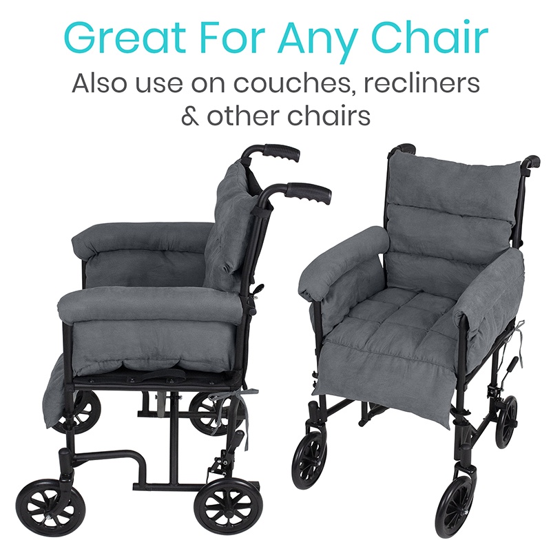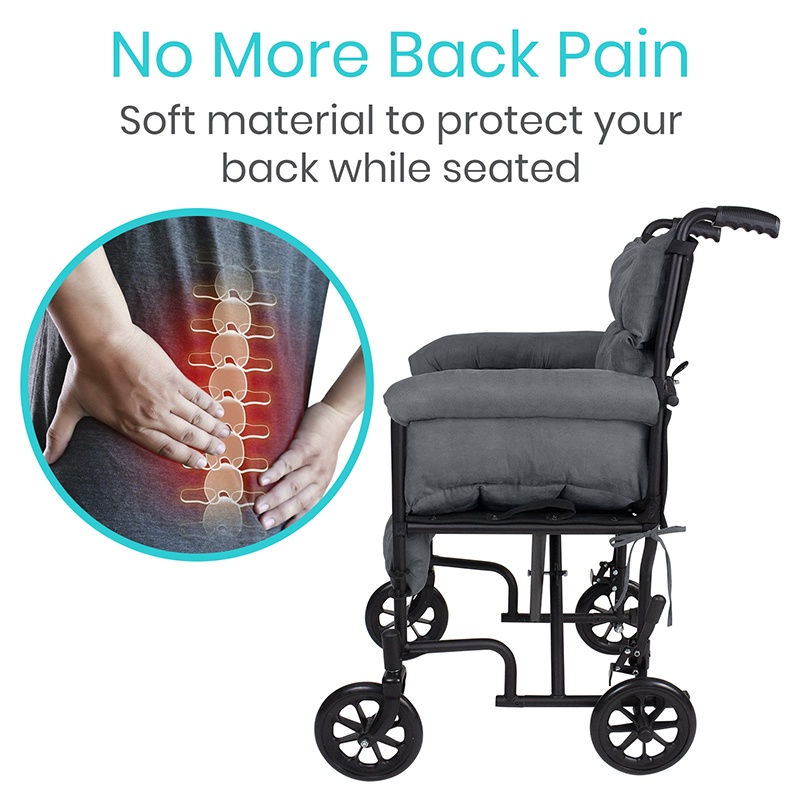 Provide comfortable seating anywhere with the Vive full wheelchair cushion. Made with soft, breathable material and filled with resilient fibers, it provides complete coverage and gentle support. Stays securely in place with fasteners and ties. Fits most wheelchairs.