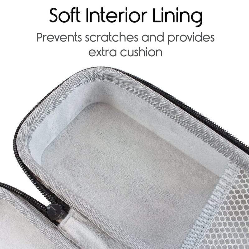 The exterior of the case is made from hard EVA plastic that is shock-absorbent and water repellent.