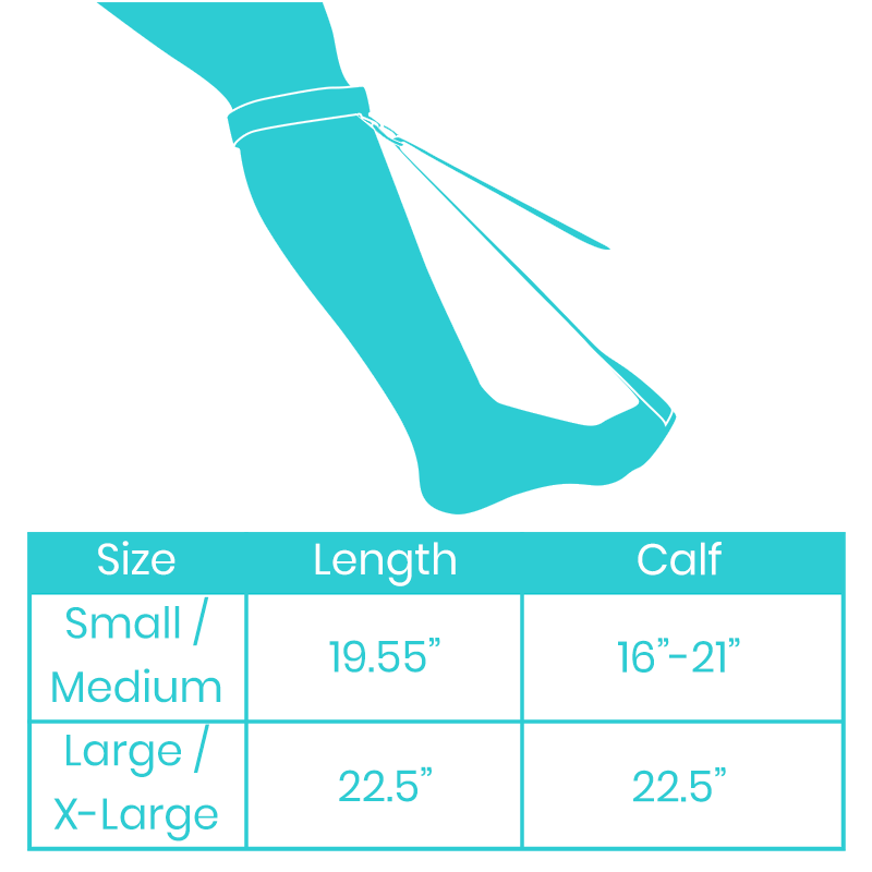 Pristine Medical’s large stretch sock is for calf measurements of 16” or greater. An adjustable calf strap provides additional support for a comfortable and secure fit.